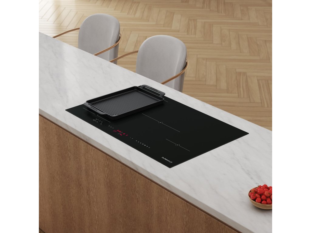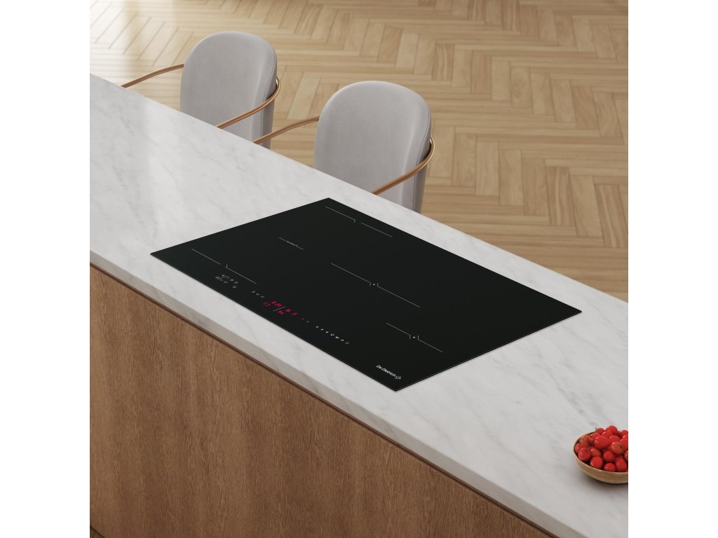 Indukční varná deska horiZone, 80 cm široká; Barevné provedení Infinite Black; Červený LED displej; Variabilní varnou plochu horiZone je možné použít celou, nebo ji rozdělit na 2 zóny; Automatická detekce velikosti a pozice nádoby s pamětí nastaveného výkonu a času; 15 stupňů nastavení výkonu; Funkce Boost a Časovač pro každou ze čtyř varných zón; Funkce: Boost, Automatic pan recognition (detekce nádoby), Recall (poslední nastavení), Switch (přemístění nádoby); 10 bezpečnostních prvků; Napájecí kabel je dodáván bez koncovky, délka 130 cm; Celkový příkon max. 7400 W; Rozměry pro vestavbu: 75 x 49,5 cm; Rozměry (VxŠxH): 6 x 80 x 51,5 cm.