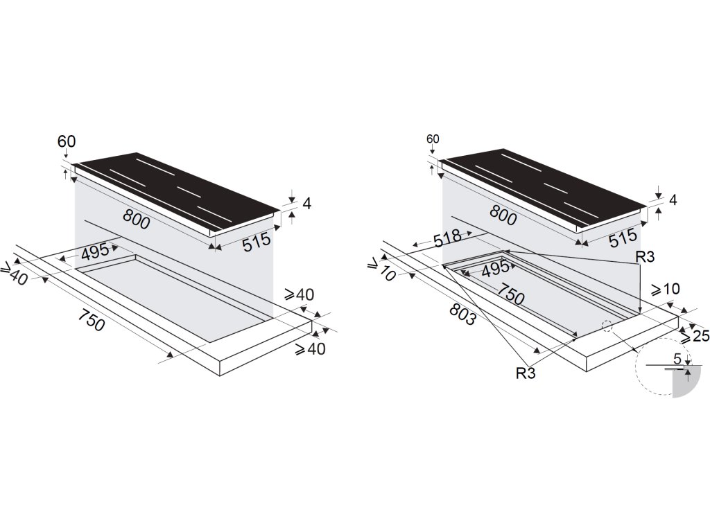 Možnost zapuštění varné desky do pracovní desky: Ano