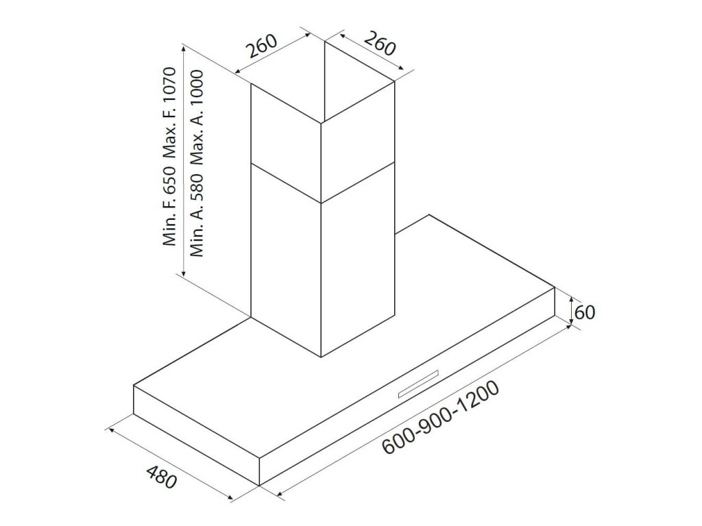 Komínová (nástěnná) digestoř nadčasového tvaru obráceného písmene T vybavená výkonným motorem s nízkou spotřebou elektrické energie.Doplňkové parametry