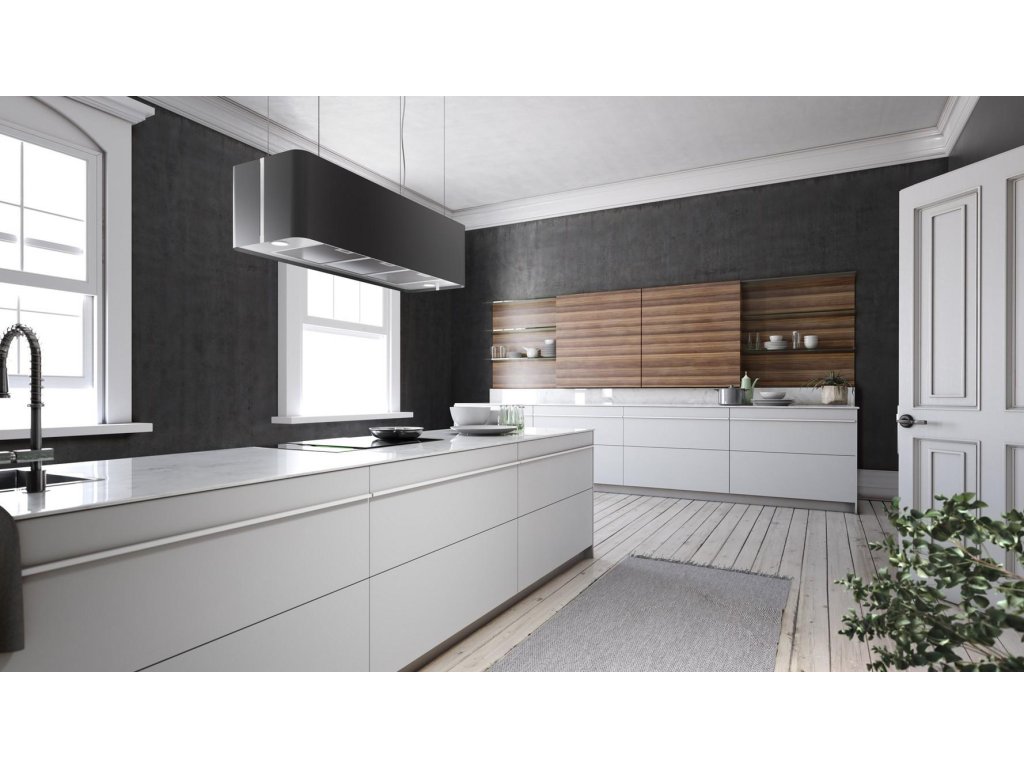 Ostrůvková digestoř v kombinaci černé a nerezu podtrhne vzhled vaší kuchyně.Digestoř je vybavena kovovým kazetovým tukovým filtrem, který není třeba měnit a lze jej jednoduše umýt v myčce nádobí.Disponuje 3 rychlostmi a funkcí intenzivního odsávání. Ovládání odsavače par je možné pomocí dálkového ovladače, který je součástí základní výbavy.Osvětlení digestoře je zajištěno dvěma LED diodovými žárovkami se světelným spektrem podobným dennímu světlu (3500 K). LED osvětlení kombinuje vysoký výkon (336 Lux) s nízkou spotřebou energie.Digestoř je určena pro provoz na recirkulaci a je dodávána včetně uhlíkového filtru.Záruka na funkční díly 5 let.Doplňkové parametry