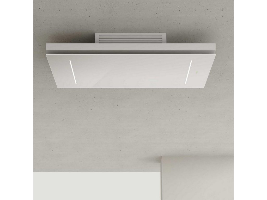 Luxusní stropní digestoř v elegantním provedení se snadnou instalací.Tělo odsavače par v kombinaci bíle stříkaného těla digestoře a panelu z bílého skla podtrhne vzhled vaší kuchyně. Atraktivitu digestoře zvyšuje štěrbinové sání - sací plocha je umístěna po obvodu odsavače, zvyšuje účinnost sání i estetickou úroveň, snižuje vnímaný hluk a usnadňuje čištění.Digestoř je vybavena kovovými kazetovými tukovými filtry, které nabízí vysoce účinné filtrování mastnot, není třeba je měnit a lze je jednoduše umýt v myčce nádobí.Digestoř disponuje 3 rychlostmi a funkcí intenzivního odsávání. Ovládání odsavače par je možné pomocí dálkového ovladače. Osvětlení digestoře je zajištěno dvěma LED pásky se světelným spektrem podobným dennímu světlu (4 000 K). LED osvětlení kombinuje vysoký výkon s nízkou spotřebou energie.Digestoř je určena pouze pro provoz na recirkulaci.Záruka na funkční díly 5 let.Doplňkové parametry