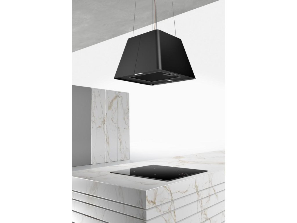 Ostrůvková digestoř v moderním černém provedení. Digestoř je vybavena kovovým kazetovým tukovým filtrem, který není třeba měnit a lze jej jednoduše umýt v myčce nádobí.Jednoduché tlačítkové ovládání odsavače par je nenáročné na obsluhu a disponuje 3 rychlostmi a funkcí intenzivní odsávání. Alternativní ovládání odsavače par je možné také pomocí dálkového ovladače, který není součástí základní výbavy a je možné jej v případě zájmu dokoupit.Osvětlení digestoře je zajištěno dvěma LED diodovými žárovkami se světelným spektrem podobným dennímu světlu (3500 K).Digestoř je určena pro provoz na recirkulaci a je dodávána včetně uhlíkového filtru.Doplňkové parametry