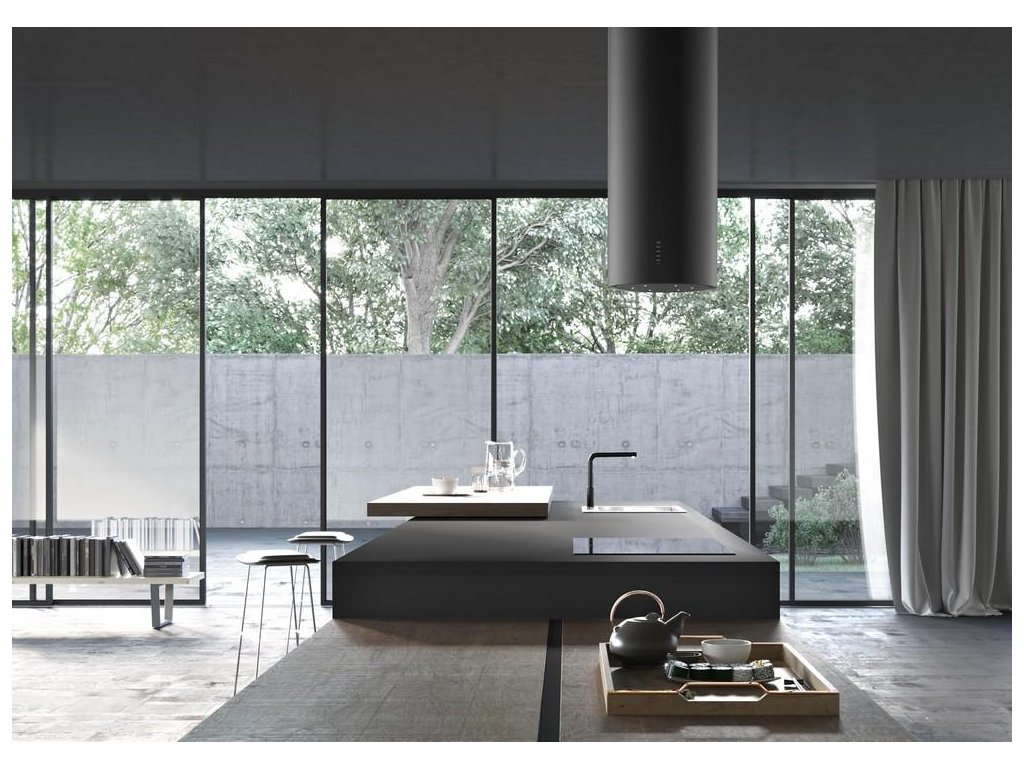 Matně černý ostrůvkový odsavač par CYLINDRA ISOLA GLOSS PLUS vyniká jednoduchým designem, elegantní válcový tvar digestoře dá punc vaší kuchyni, ať už je klasická nebo v moderním duchu.