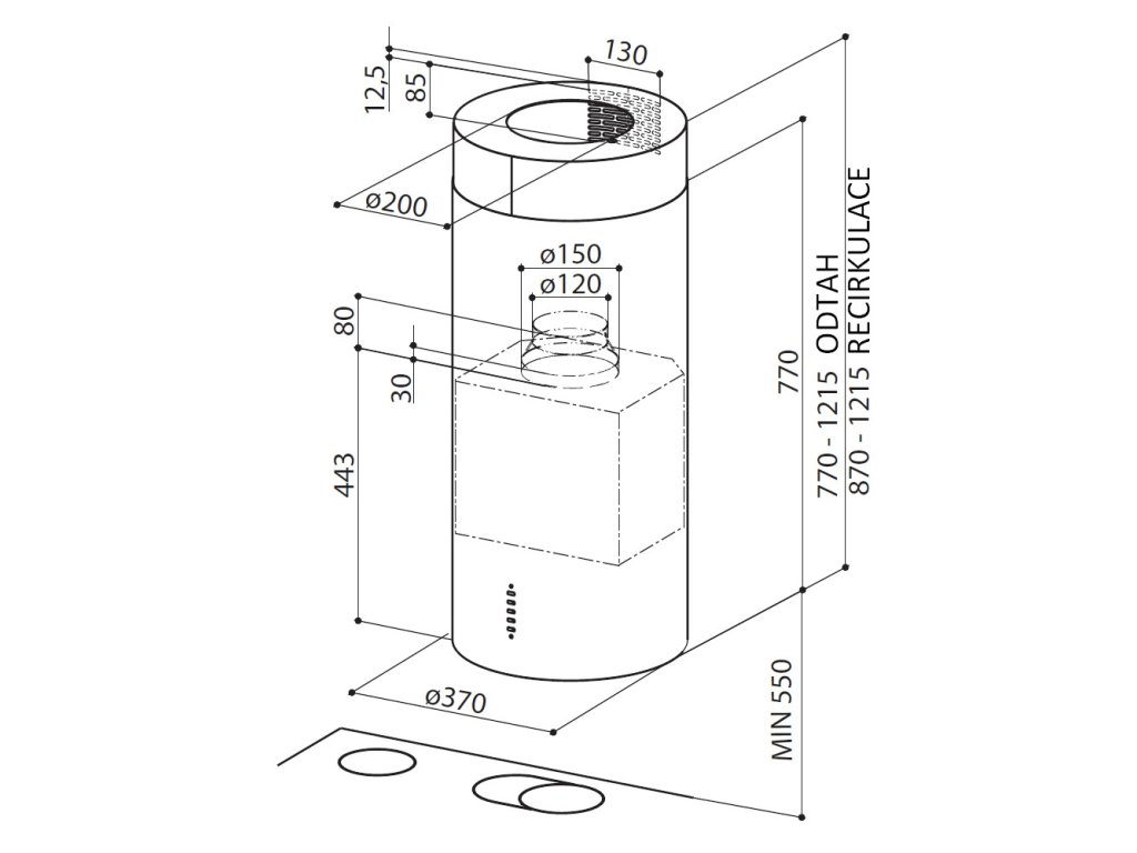 - Recirkulace: Ano (nutno doplnit uhlíkový filtr, není součástí balení).