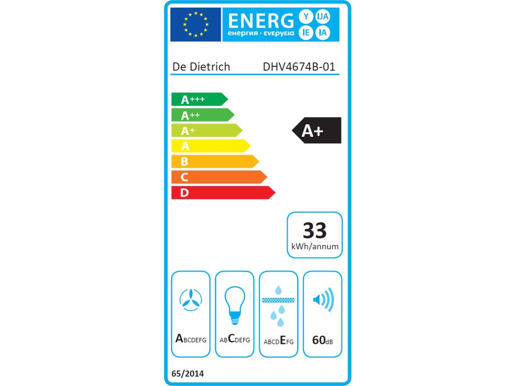Dopřejte své kuchyni nástěnný komínový odsavač par De Dietrich DHV4674B, který je zároveň dekorativním prvkem. Má šířku 60 cm a s hliníkovými filtry se stane nejen dekorací, ale i účinným spotřebičem. Maximální výkon 745 m3/h s hlučností 40 až 60 dB se hodí do každé kuchyně. Energetická třída A+ potěší roční spotřebou i vaši peněženku.