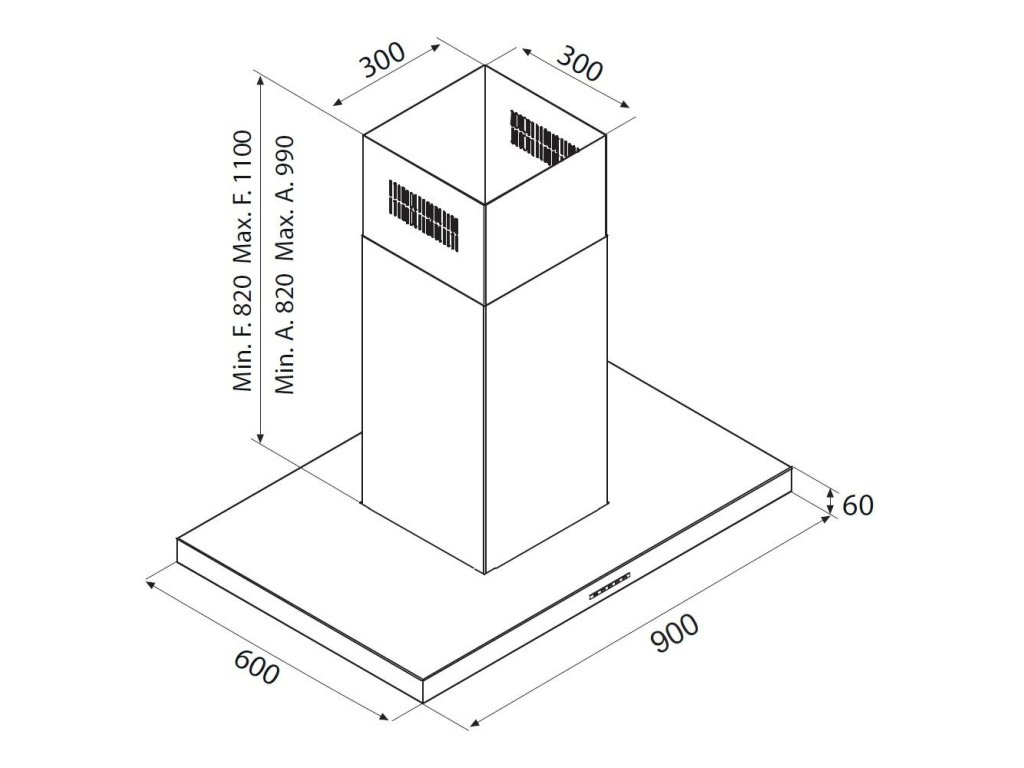 Ostrůvková digestoř nadčasového tvaru obráceného písmene T vybavená výkonným motorem s nízkou spotřebou elektrické energie.Ventilační jednotku digestoře je možné pomocí sady EVJ AF2 přemístit mimo kuchyni a docílit tak téměř bezhlučného provozu.Tělo odsavače par je vyrobeno z černě stříkané oceli. Tvar digestoře nabízí možnost využití horní části jako odkládacího prostoru.Digestoř je vybavena kovovými kazetovými tukovými filtry, které není třeba měnit a lze je jednoduše umýt v myčce nádobí.Jednoduché tlačítkové ovládání odsavače par je nenáročné na obsluhu a disponuje 4 rychlostmi.Osvětlení digestoře je zajištěno LED diodovými žárovkami se světelným spektrem podobným dennímu světlu. LED osvětlení kombinuje vysoký výkon s nízkou spotřebou energie.Odsavač je standardně dodáván v odtahové verzi, součástí základní výbavy digestoře je teleskopický komín a zpětná klapka, v případě recirkulačního provozu je nutné k digestoři dokoupit uhlíkový filtr.Záruka na funkční díly 5 let.Doplňkové parametry