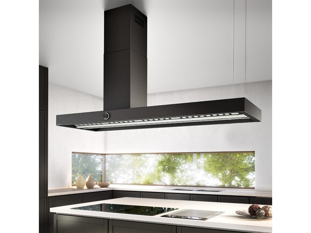 Originální ostrůvková digestoř v kombinaci matné černé a nerezových baffle filtrů se může stát dominantou jak industriální, tak rustikální kuchyně. Tvar digestoře nabízí možnost využití horní části jako odkládacího prostoru.Digestoř je vybavena speciálními tukovými BAFFLE filtry z nerezové oceli, které se vyznačují profesionálním vzhledem a velmi vysokou filtrační schopností. Využívají speciální labyrintový systém pro zachycení tukových částic obsažených v kuchyňských parách. Lze je mýt v myčce nádobí, čímž se zachová jejich bezchybná funkce. Speciální elektronické otočné ovládání digestoře nabízí možnost plynulé regulace výkonu digestoře.Osvětlení digestoře je zajištěno LED páskem se světelným spektrem podobným dennímu světlu (4000 K). LED osvětlení kombinuje vysoký výkon (154 Lux) s nízkou spotřebou energie.Odsavač je standardně dodáván v odtahové verzi, součástí základní výbavy digestoře je černý teleskopický komín a zpětná klapka, v případě recirkulačního provozu je nutné k digestoři dokoupit uhlíkový filtr.Záruka na funkční díly 5 let.Doplňkové parametry