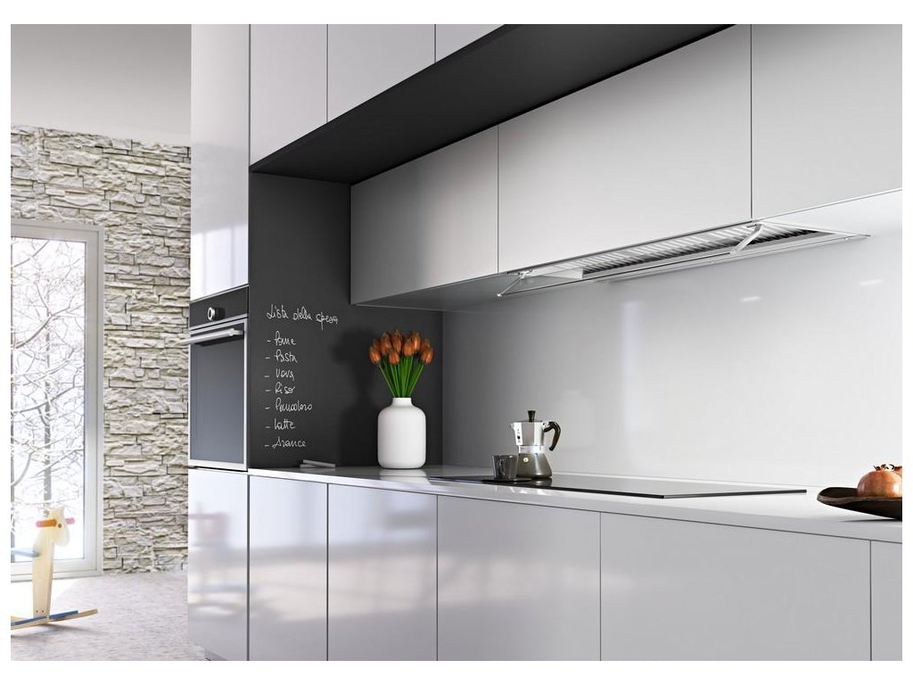 Originální vestavná digestoř vybavená výkonným motorem s nízkou spotřebou elektrické energie.Odsavač par v nerezovém provedení s inovativními baffle filtry s možností vestavění do skříňky zaručuje maximální pohodlí při vaření a může se stát dominantou jak moderní industriální, tak i rustikální kuchyně.Digestoř je vybavena speciálními tukovými BAFFLE filtry z nerezové oceli, které se vyznačují profesionálním vzhledem a velmi vysokou filtrační schopností. Využívají speciální labyrintový systém pro zachycení tukových částic obsažených v kuchyňských parách. Lze je mýt v myčce nádobí, čímž se zachová jejich bezchybná funkce. Jednoduché tlačítkové ovládání odsavače par je nenáročné na obsluhu a disponuje 3 rychlostmi a funkcí intenzivní odsávání. Alternativní ovládání odsavače par je možné také pomocí dálkového ovladače, který není součástí základní výbavy a je možné jej v případě zájmu dokoupit.Osvětlení digestoře je zajištěno dvěma LED diodovými žářovkami se světelným spektrem podobným dennímu světlu (3500 K). LED osvětlení kombinuje vysoký výkon (175 Lux) s nízkou spotřebou energie.Odsavač je standardně dodáván v odtahové verzi, součástí základní výbavy digestoře je zpětná klapka, v případě recirkulačního provozu je nutné k digestoři dokoupit uhlíkový filtr a recirkulační mřížku.Záruka na funkční díly 5 let.Doplňkové parametry