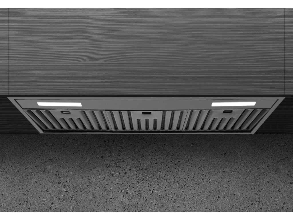 Plně vestavný odsavač do skříňky Minimal 7 z prémiové řady designových odsavačů Ciarko Design, provedení černě lakovaný nerez, šířka 74 cm, extrémně úsporný provoz v energetické třídě A++ (energetický štítek A++,A,A,C), osvětlení 2 x LED pásek s možností regulace teploty světla (2900 až 6100 K), tichý, výkonný a spolehlivý invertorový motor, bezdotykové ovládání gesty rukou + dálkový ovladač, barevné LED diody informující o aktuálním stupni nastavení výkonu, 3 stupně výkonu + režim BOOST, výkon odtahu ve standardním režimu 180 - 400 m3/h, výkon odtahu v režimu BOOST 660 m3/h, hlučnost ve standardním režimu 43-59 dB(A), hlučnost v režimu BOOST 69 dB(A), roční spotřeba energie 27,2 kWh/a, 2x FR-8705 filtr z aktivního uhlíku pro režim recirkulace, rozměry (V x Š x H): 320 x 740 x 290 mm