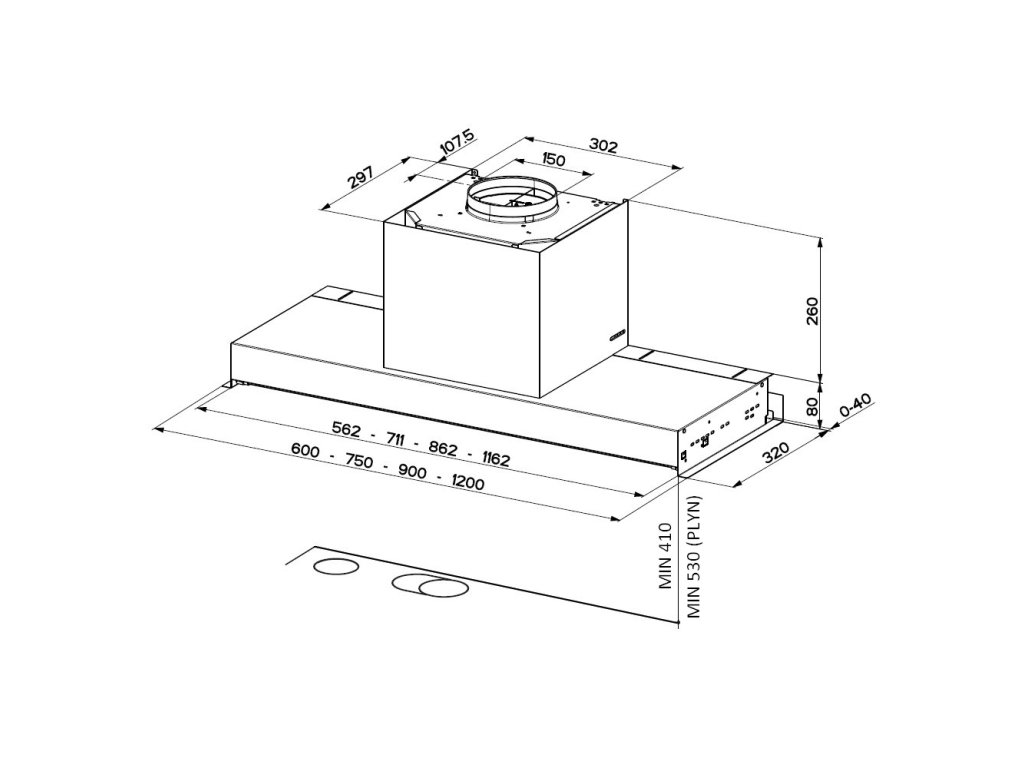 Odsavač par je osazen moderní ventilační jednotkou SP, která redukuje spotřebu a hlučnost a pracuje v energetické třídě B.