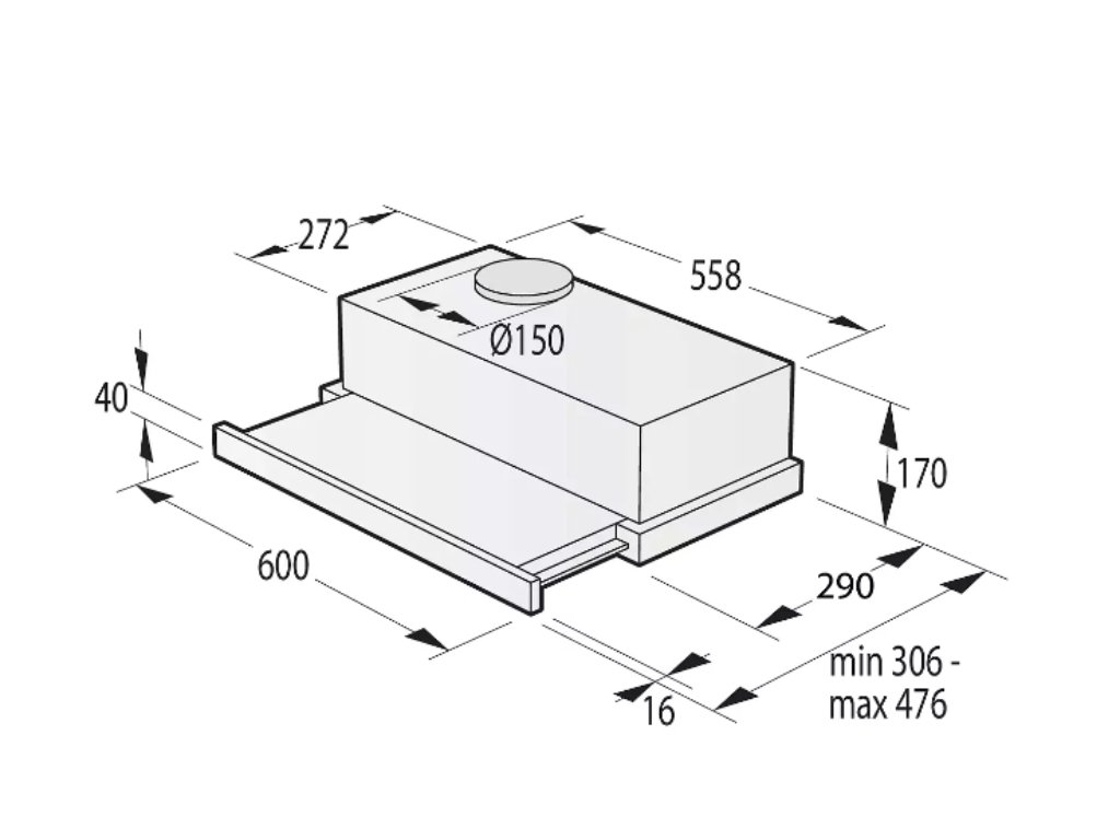 Vestavný výsuvný odsavač par MORA OT 652 GB1 v černém provedení s výkonem 350 m3/h spolehlivě odstraní z kuchyně všechny nežádoucí pachy. Díky posuvnému čelu odsavač dokonale splyne s kuchyňskou linkou, protože motor s horním odtahem je skrytý uvnitř skříňky.Odsavač má tlačítkové 3 rychlostní ovládání umístěné pod lištou a LED osvětlení s výkonem 2,1 W, které perfektně osvítí varnou plochu a vy tak budete dokonale vidět do hrnců či pánví na připravovaný pokrm.