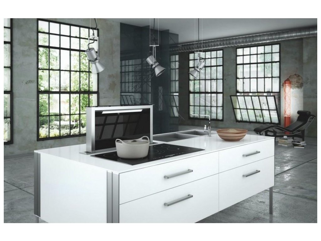 Je určena k instalaci přímo do pracovní desky za varnou plochu. Jakmile ji zapnete, vysune se z pracovní desky sací část a začne odsávat páry a pachy nejen z prostoru nad varnou deskou, ale rovnou z celé kuchyně.