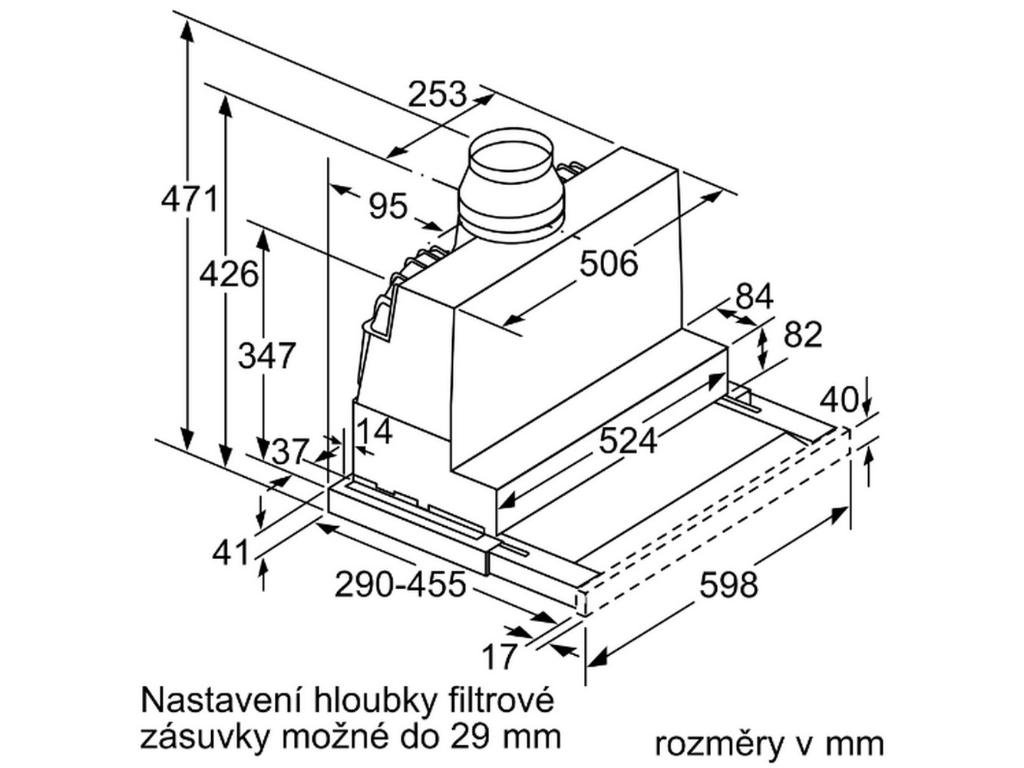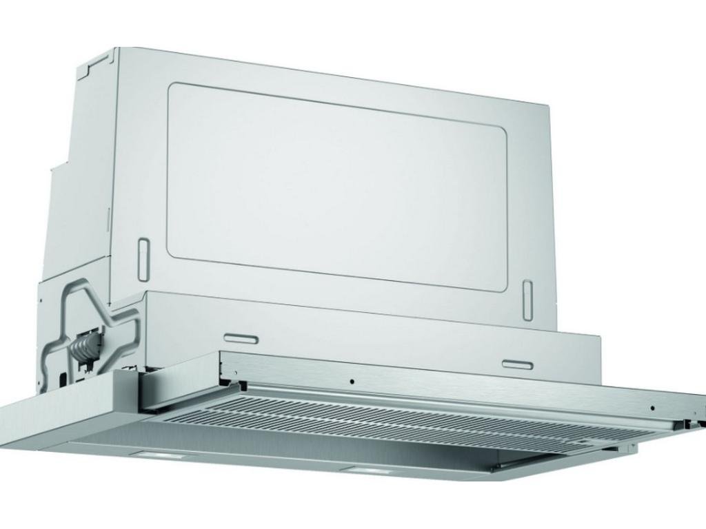 BOSCH DFR067A52Teleskopický odsavač par: díky vestavění do nástěnné skříńky je stěží viditelný a nijak nenarušuje designovou linku kuchyňského prostoru.