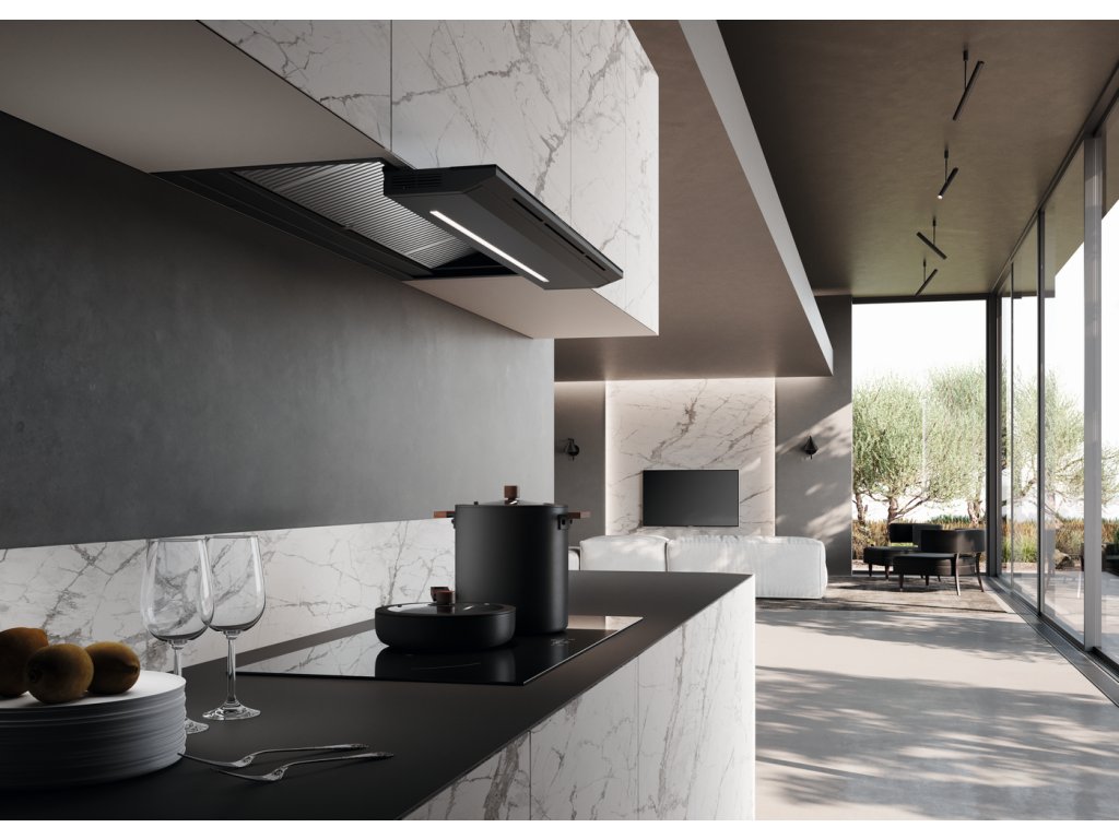 Vestavná digestoř IN-NOVA ZERO DRIP představuje díky svému industriálnímu designu dokonalou kombinaci současného trendu a technologie.