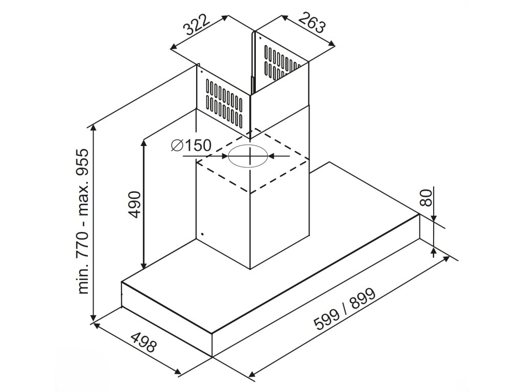 | Min. vzdálenost mezi odsavačem a elektrickou varnou deskou: | 55 cm |