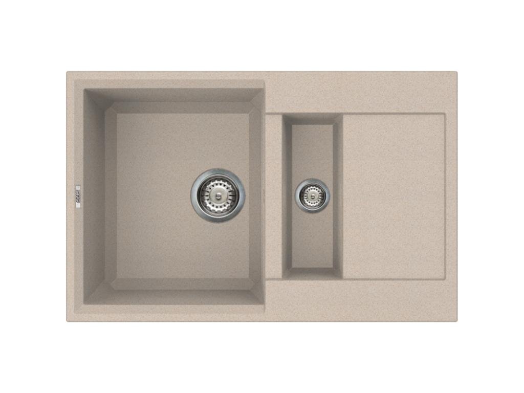 Balení obsahuje: prostorově úsporný odpad, bezpečnostní přepad a předmontované úchytky. TYP MONTÁŽE: HORNÍ MONTÁŽ BARVA: BÉŽOVÁ MATERIAL: GRANITEK VHODNÉ PRO SKŘÍNKU: 600 MM ROZMĚR: 780 X 500 MM VÝŘEZ: 760 X 480 MM HLOUBKA VANIČKY: 220/120 MM
