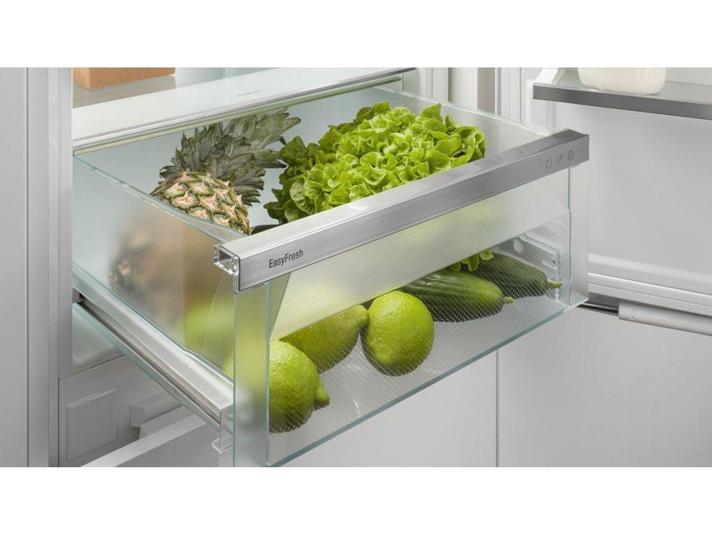 Naše přihrádka EasyFresh zaručuje ve vaší domácnosti čerstvost jako na trhu. Ať už nebalené ovoce, zelenina nebo plodiny: vše je zde optimálně uloženo. Díky těsnému uzávěru zvyšují potraviny vlhkost vzduchu v přihrádce. Potraviny tak zůstanou dlouho čerstvé.