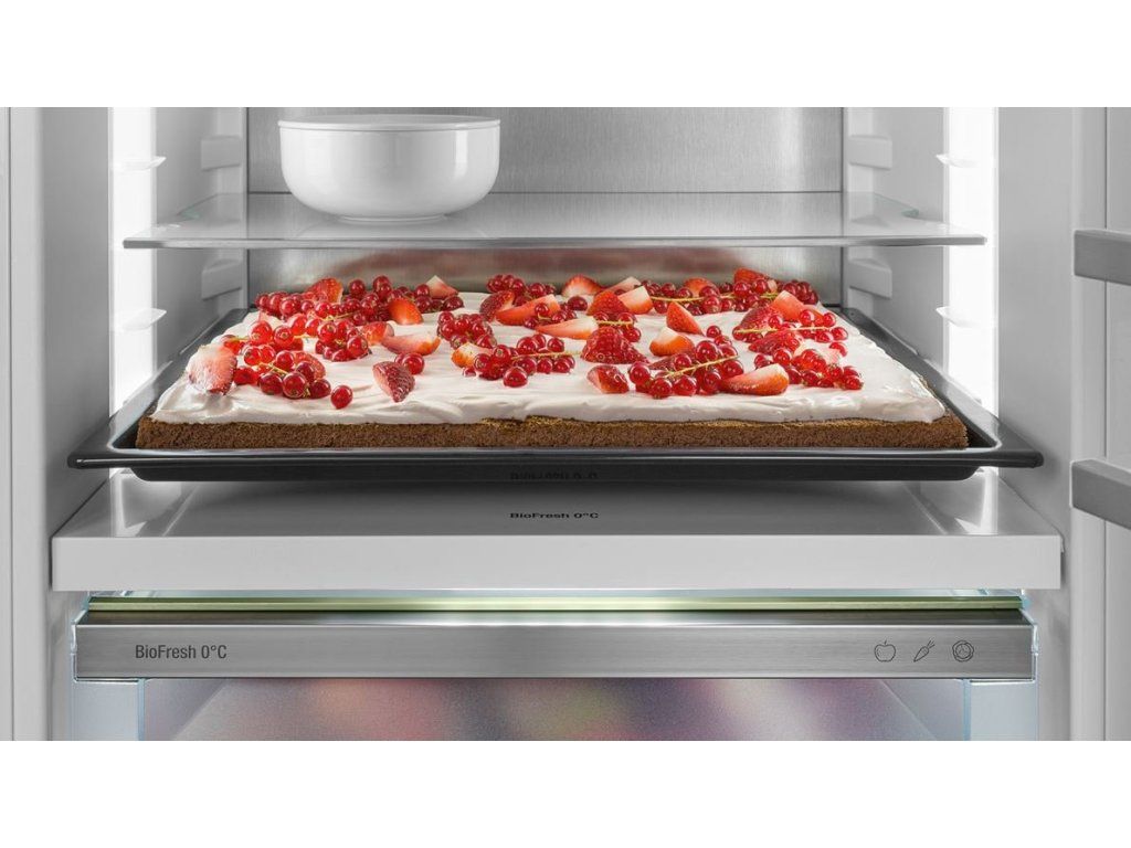 Chcete si uchovat čerstvé, doma upečené ovocné koláče? Nebo připravenou pizzu, kterou chcete dát do trouby až později? Jednoduše zasuňte pečicí plech do své chladničky Liebherr – poskytuje vám dostatek místa pro uložení pečicích plechů. Mimořádně praktické: Pečicí plech můžete zasunout a vysunout při otevření dveří na 90°.
