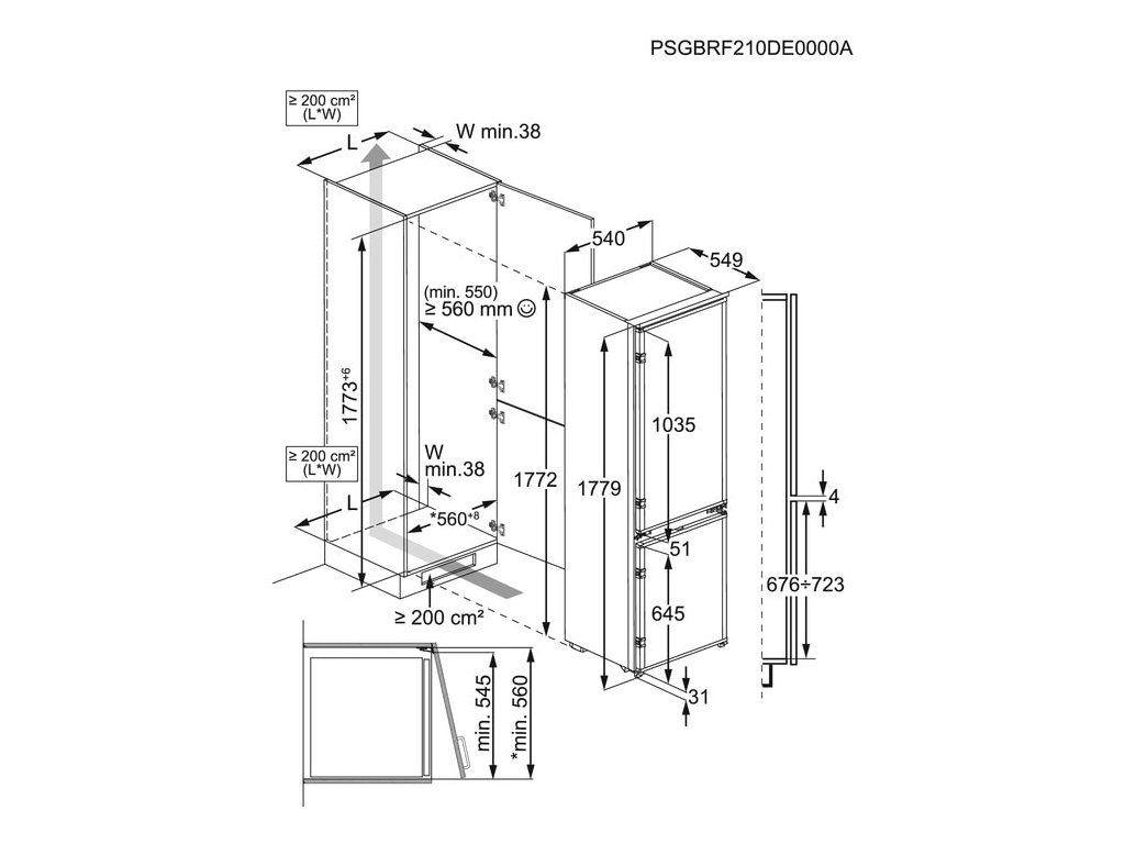 Vestavné rozměry (V x Š x H): 1780 × 560 × 550 mm