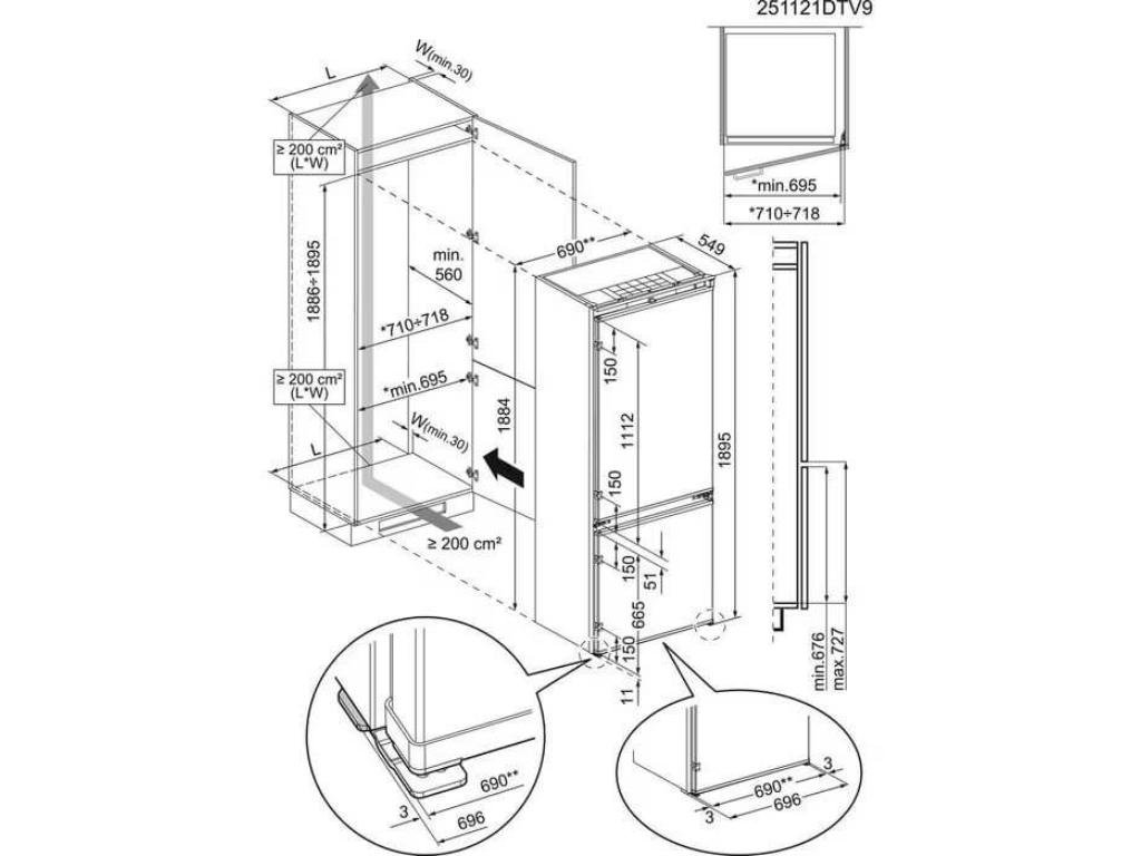 Vestavné rozměry (mm): 1894 x 710 x 560 Výkon