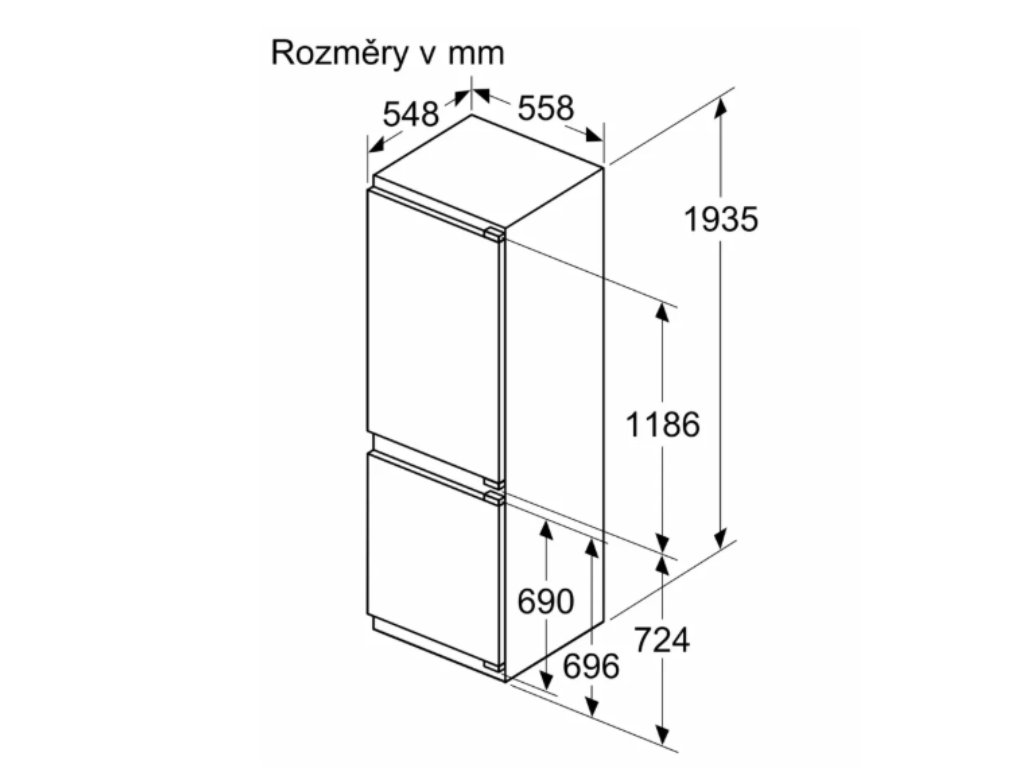 Technický přehledRozměry spotřebiče 1935x558x548 mm Třída energetické účinnosti 1Poznámka pod čarou 1: stupnice tříd energetické účinnosti od A do G C noFrost - již nikdy žádné odmrazování