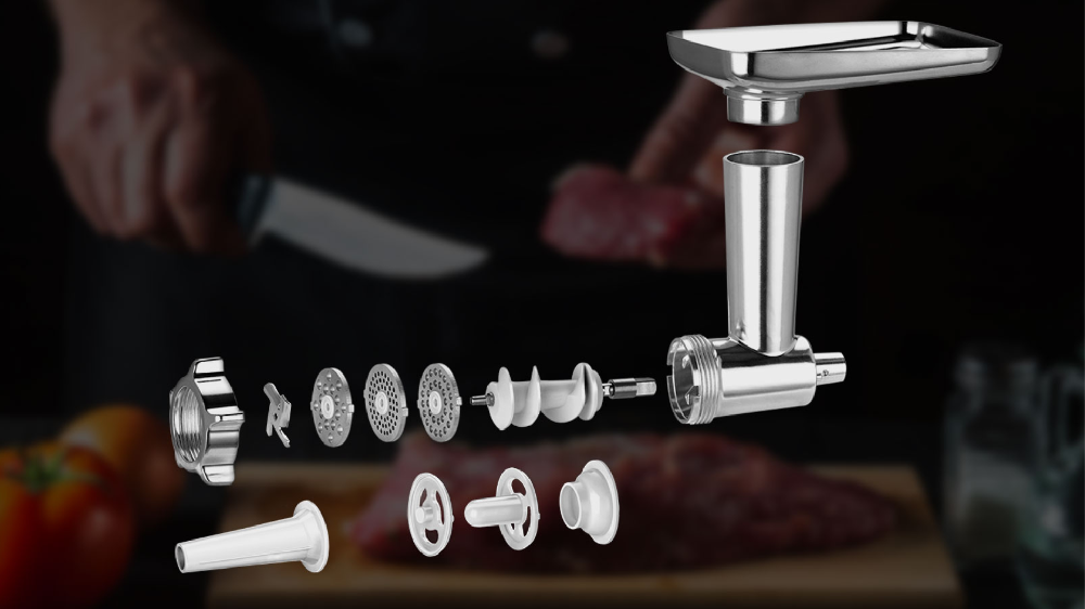 Nástavec je vybaven třemi sítky s jemnými, středními a hrubými otvory, což vám umožní nastavit přesnou konzistenci podle potřeby. Jemné síto je ideální pro jemně mleté maso do paštik, střední síto je vhodné pro přípravu masových směsí jako sekaná nebo karbanátky a hrubé síto se skvěle hodí na přípravu domácích klobás.