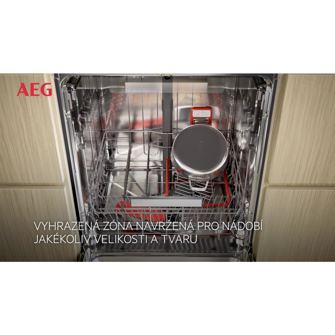 Speciální zóna SprayZone je určena pro hrnce, pekáče a nádobí s odolnými nečistotami.