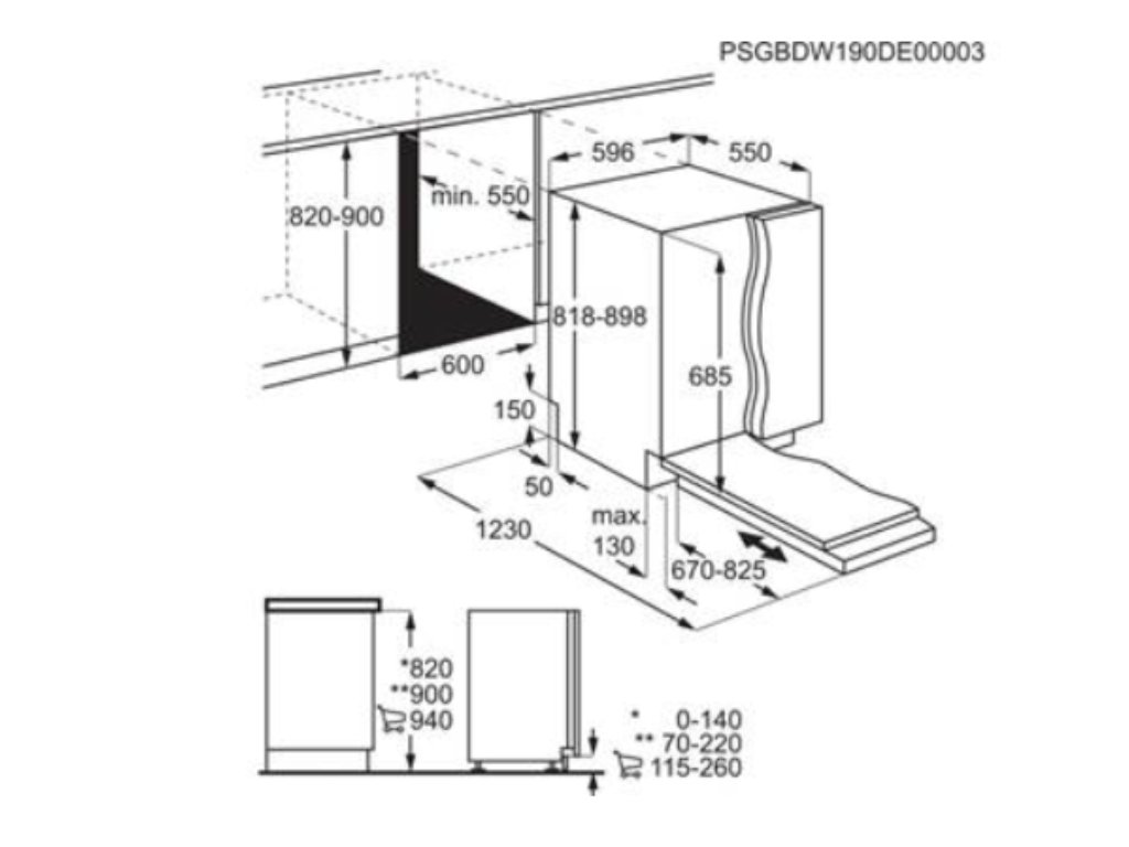 Vestavné rozměry V(min/max)xŠxH (mm): 820/900 x 600 x 570