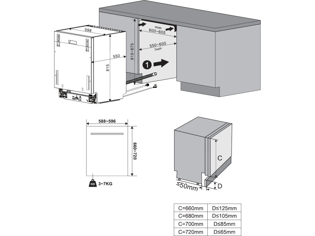 Plně vestavná myčka nádobí s kapacitou 16 sad nádobí a šířkou 60 cm; 4 mycí programy; Bílý LED displej s dotykovým ovládáním; Info light promítání na podlahu; Invertorový motor; Odložený start až o 24 hodin; Vnitřní uspořádání nabízí třetí horní zásuvku na příbory a nastavitelný horní koš, nástavce na sklenice na víno; Pro úsporu vody a energie můžete zvolit mytí v horním, spodním nebo obou koších; Sklopné hroty ve spodním i horním koši; Aqua Stop; Hlučnost 45 dB(A); Energetická třída D; Spotřeba energie je 87 kWh na 100 cyklů a vody 11,9 l na cyklus; Rozměry (VxŠxH): 81,5 - 87,5 x 59,8 x 55 cm