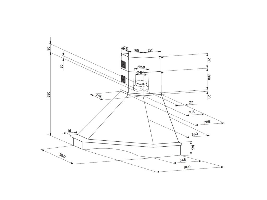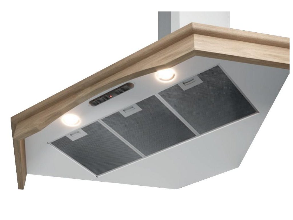 Rohová rustikální digestoř je vybavena kovovými kazetovými tukovými filtry, které není třeba měnit a lze je jednoduše umýt v myčce nádobí.