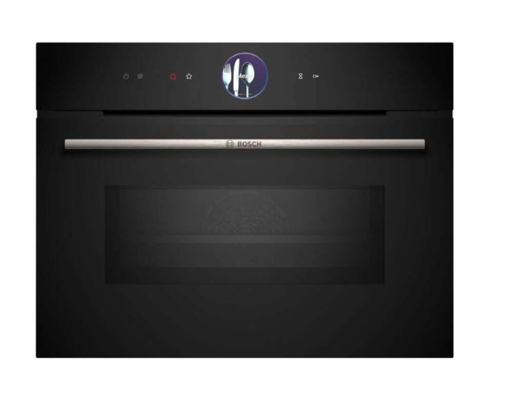 Bosch CMG7361B1Kompaktní mikrovlnná trouba s digitálním ovládacím prstencem a dotykovým TFT displejem: umožňuje velmi rychle dosáhnout dokonalých výsledků pečení a restování.