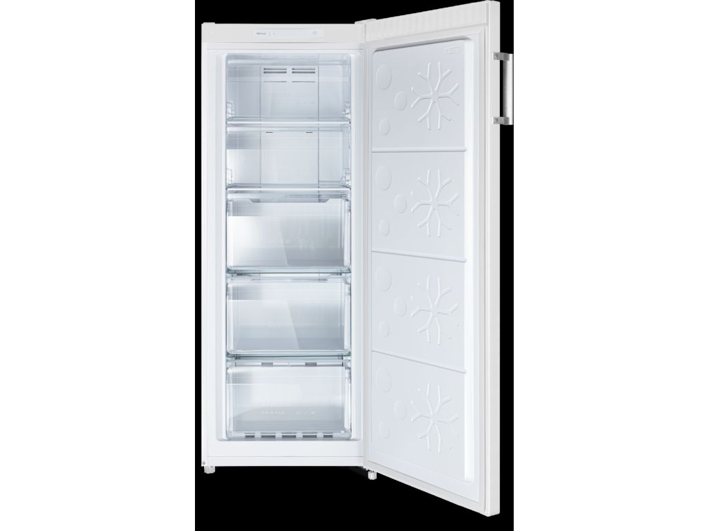 Vnitřní objem 166 litrů je rozdělen do 3 standardních zásuvek a 2 horních přihrádek s výklopným čelem, což zajišťuje přehledné uspořádání uložených potravin. K dispozici jsou funkce Super mrazení a Super chlazení pro rychlé dosažení požadované teploty. Bezpečnost a spolehlivost provozu zvyšují dětský zámek, alarm otevřených dveří, alarm překročení teploty a poruchy a paměť při výpadku napájení.