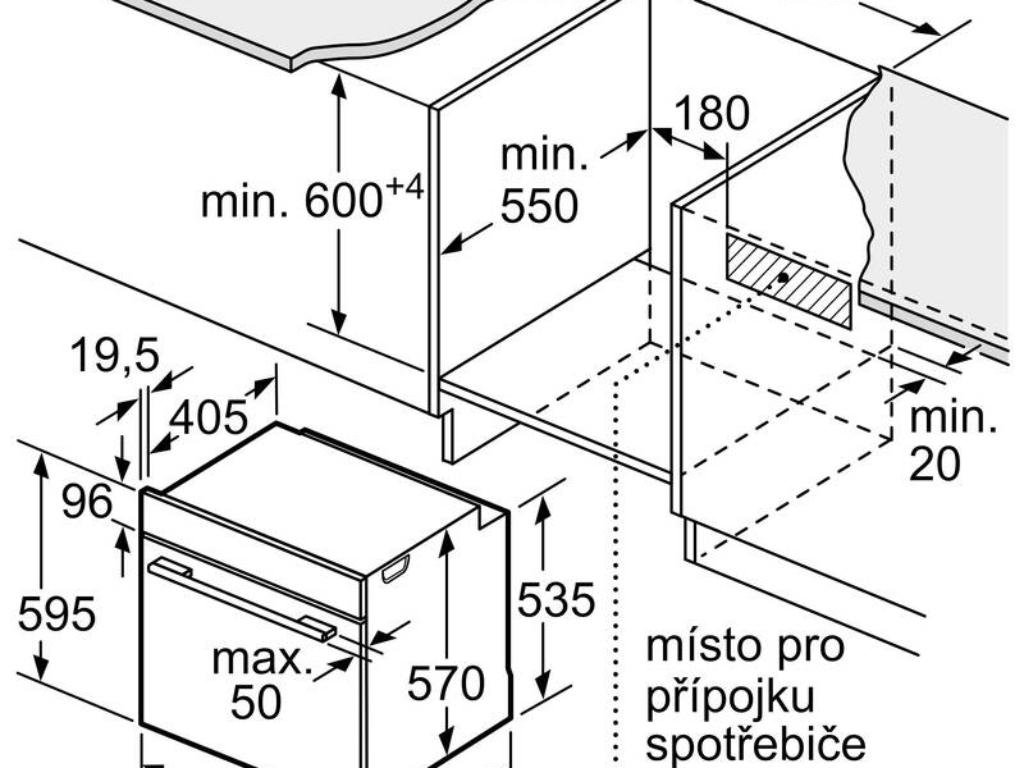 Ne Výška trouby 59,50 cm Šířka trouby 59,40 cm