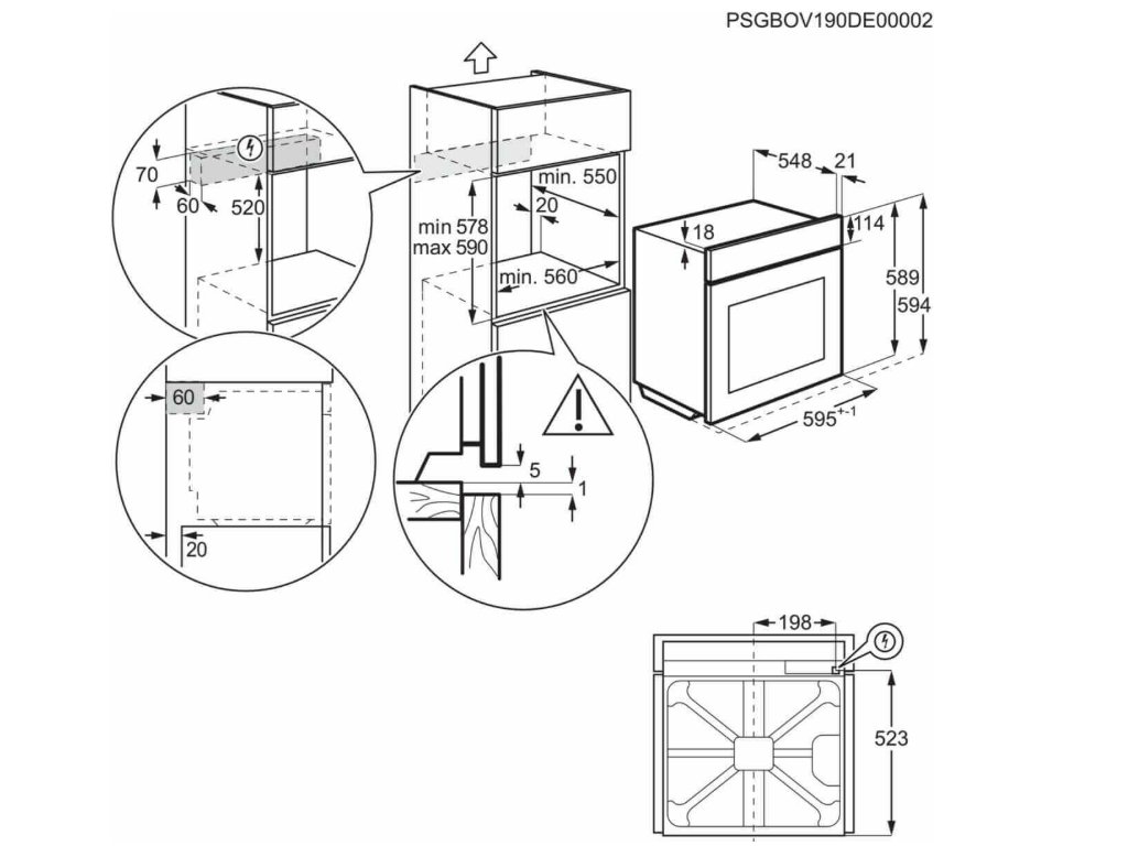 Oven light on/off selectable (menu direct access button), elektronická regulace teploty,
