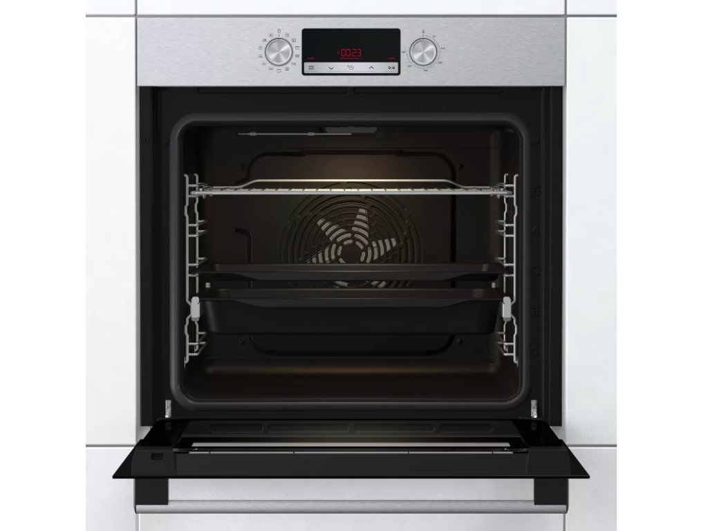 Pizza 300 °C program pro pomalé pečení program pro mražená a hotová jídla program pro horkovzdušné fritování bez tuku funkce gratinování EXTRA PÁRA 2 programy pečení v páře rychlý předehřev trouby výsuvné teleskopické rošty (1 úroveň) tlumené zavíraní & tlumené otvírání dvířek ECO CLEAN funkce ekologického čištění trouby párou nerez s úpravou proti otiskům prstů osvětlení trouby personalizace nastavení (denní čas, hlasitost zvukového signálu, displej) paměť posledního nastavení času pečení energetická třida A jmenovitý příkon: 3,5 kW elektrické napětí: 230 V příslušenství: 1x pekáč, 1x rošt nerez
