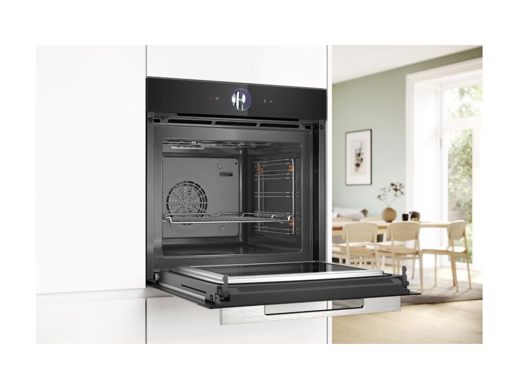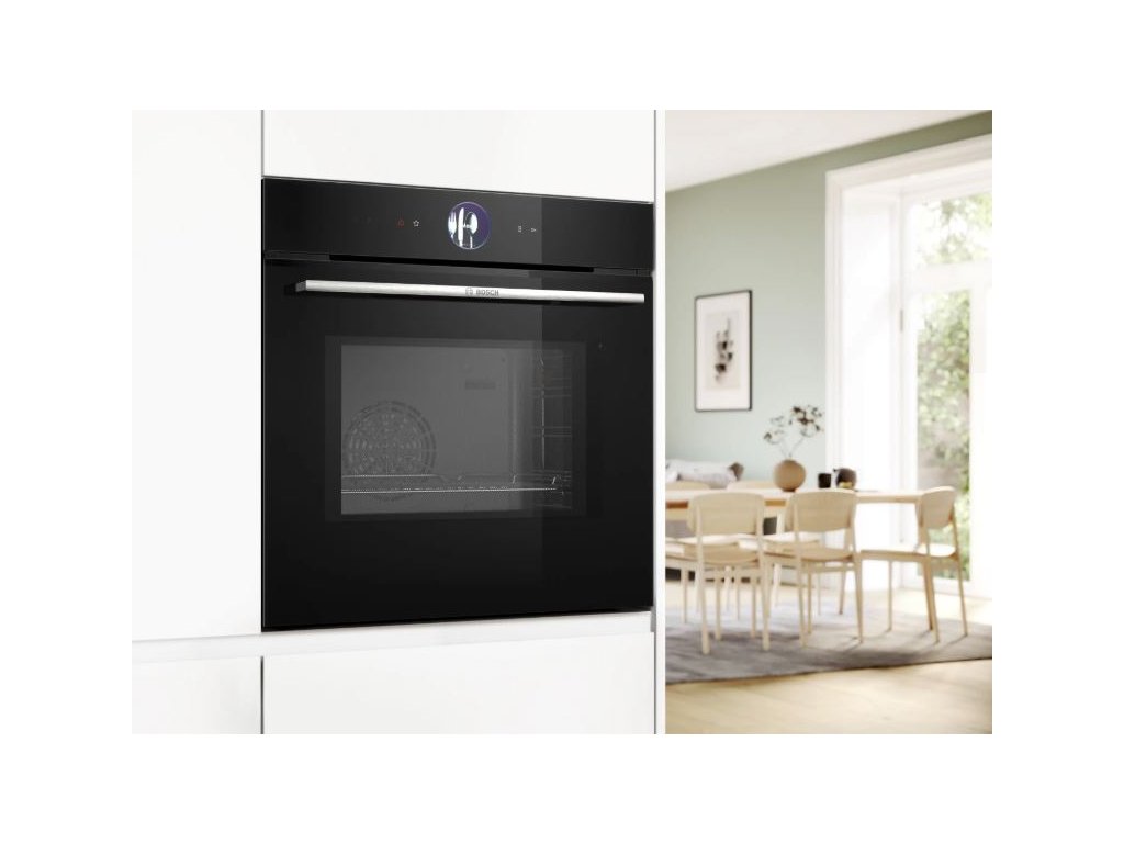 Díky chytrým funkcím a propojení s aplikací Home Connect můžete do trouby odesílat nové recepty přímo z telefonu. Pro ještě větší komfort je možné troubu ovládat hlasem prostřednictvím funkce Oven Assistant. Zdravější přípravu jídel umožňuje funkce Air Fry, ideální například pro domácí zeleninové chipsy.