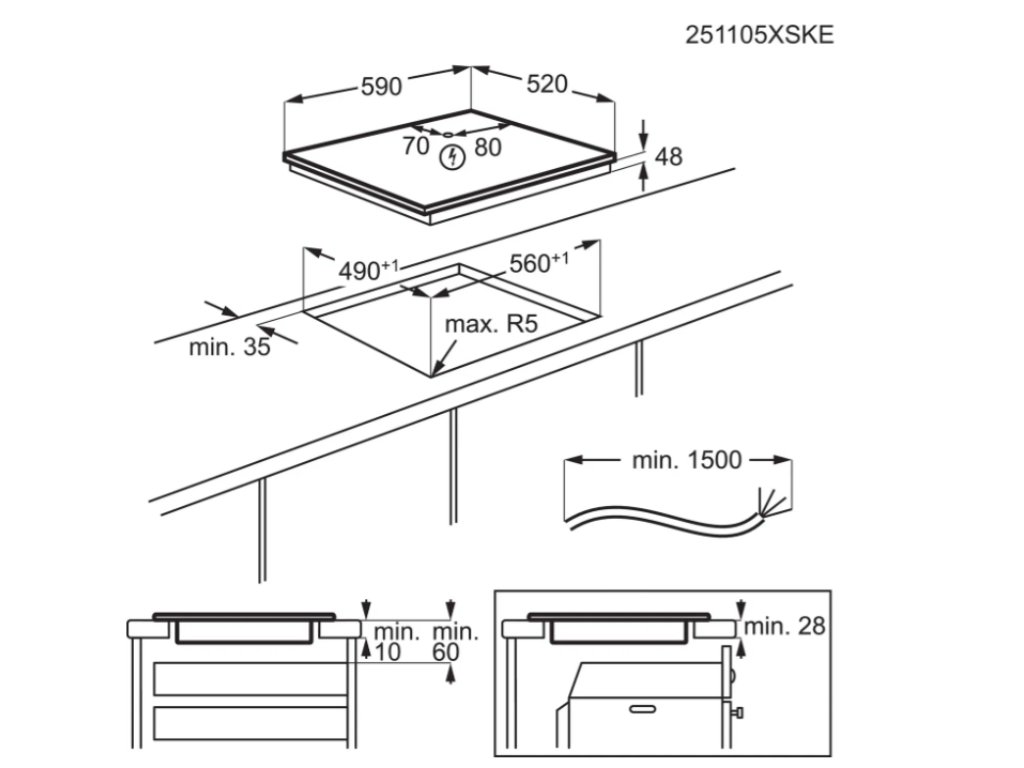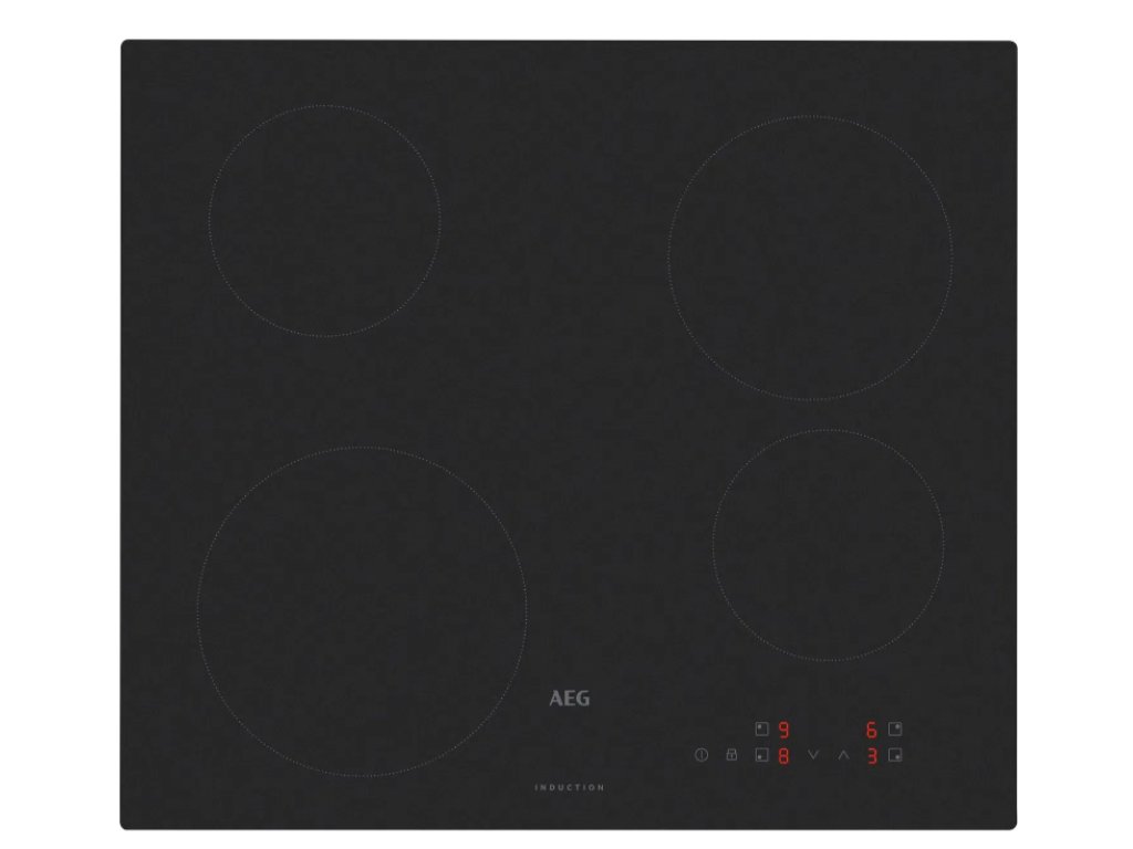 Varná deska - indukční, vestavná, 4 plotýnky, automatické vypnutí, dětská pojistka a ukazatel zbytkového tepla, využití zbytkového tepla, nezávislé programování každé varné zóny a booster, zvuková signalizace, dotykové ovládání, bez rámečku, vzhled matné sklo, povrch sklo, připojení 230 V a 400 V, rozměry 59 × 52 cm (Š×H)Typ varné desky