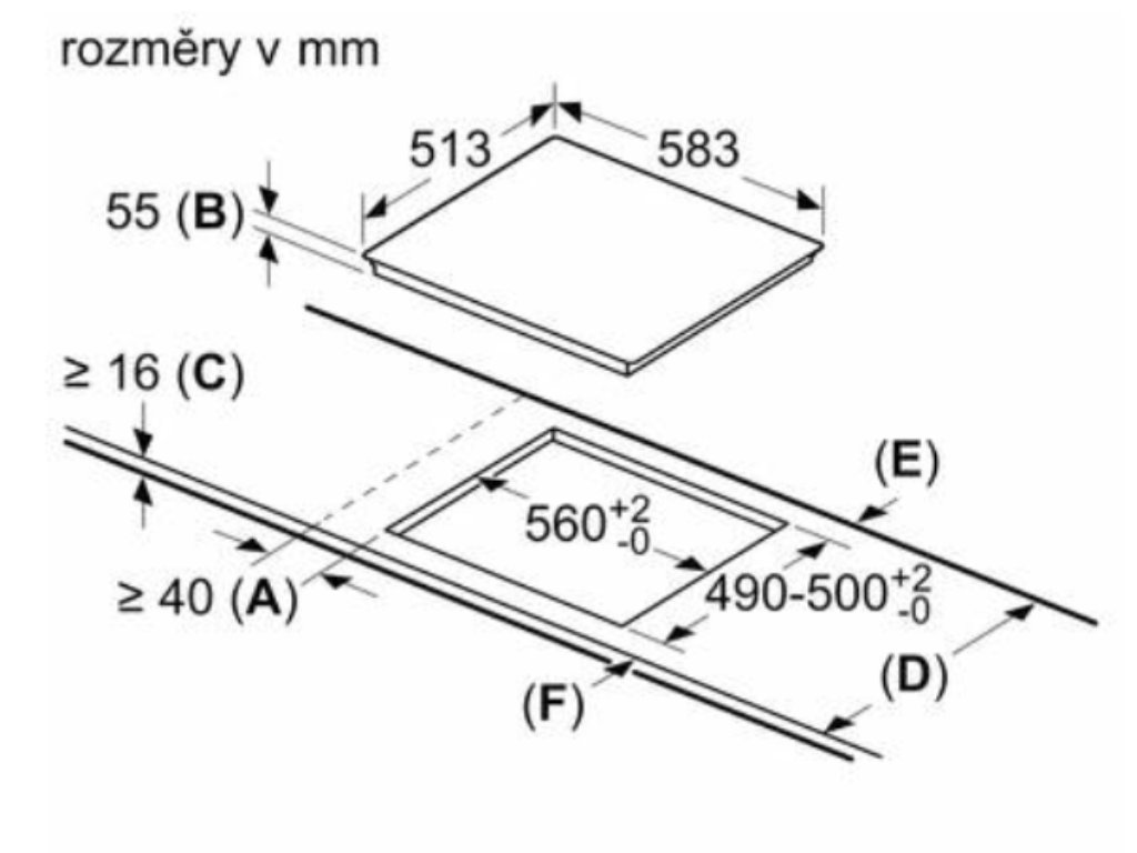 Rozměry pro vestavbu: 55 x 560 x 490–500 mm