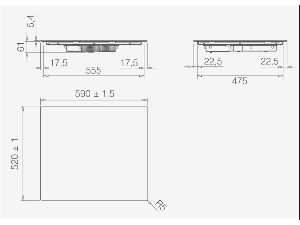 Varné zóny: 2 (1,2 - 1,6kW) - Ø 160 mm | 2 (1,5 - 2kW) - Ø 210 mm Šířka výrobku cm: 59 Výška výrobku cm: 6