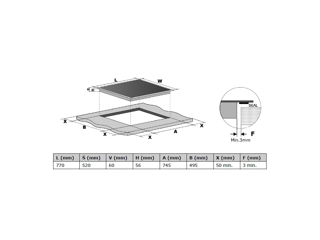 | Rozměry otvoru pro vestavbu (V x Š x H): | 74,5 x 49,5 |