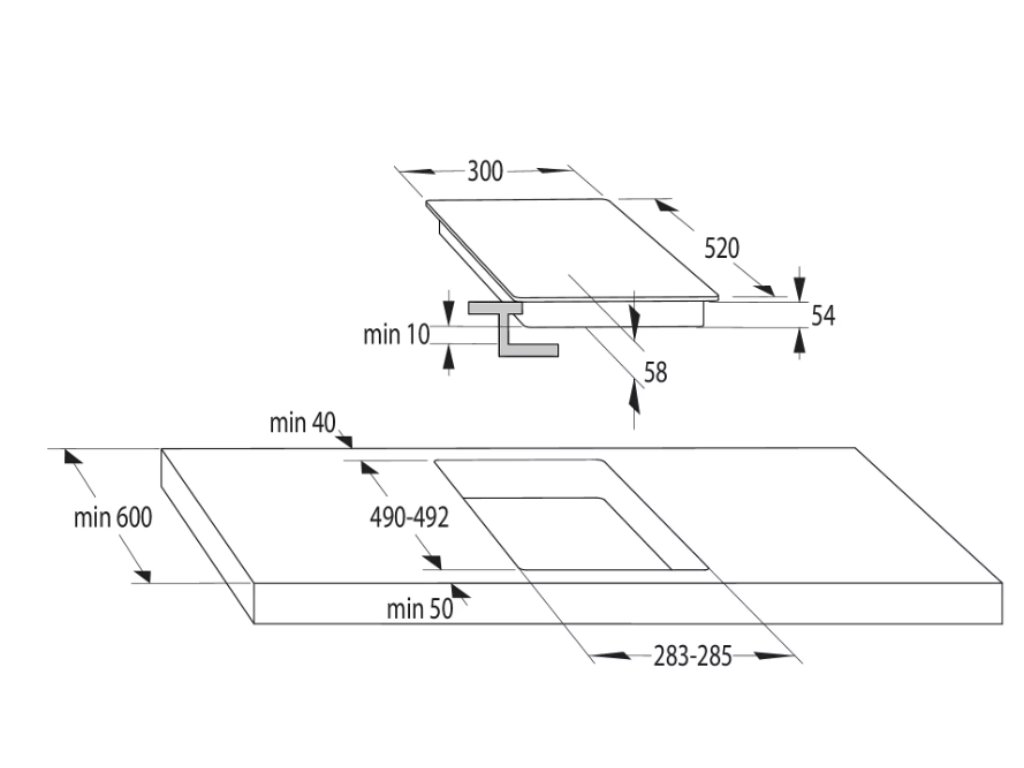 Indukční deska 300 mm Šířka 58 mm Výška 520 mm