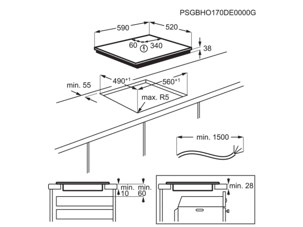 Rozměry a hmotnost varné desky Šířka varné desky 59 cm