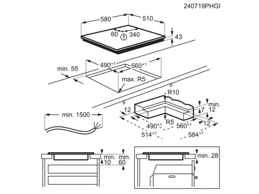 Rozměry a hmotnost varné desky Šířka varné desky 59 cm