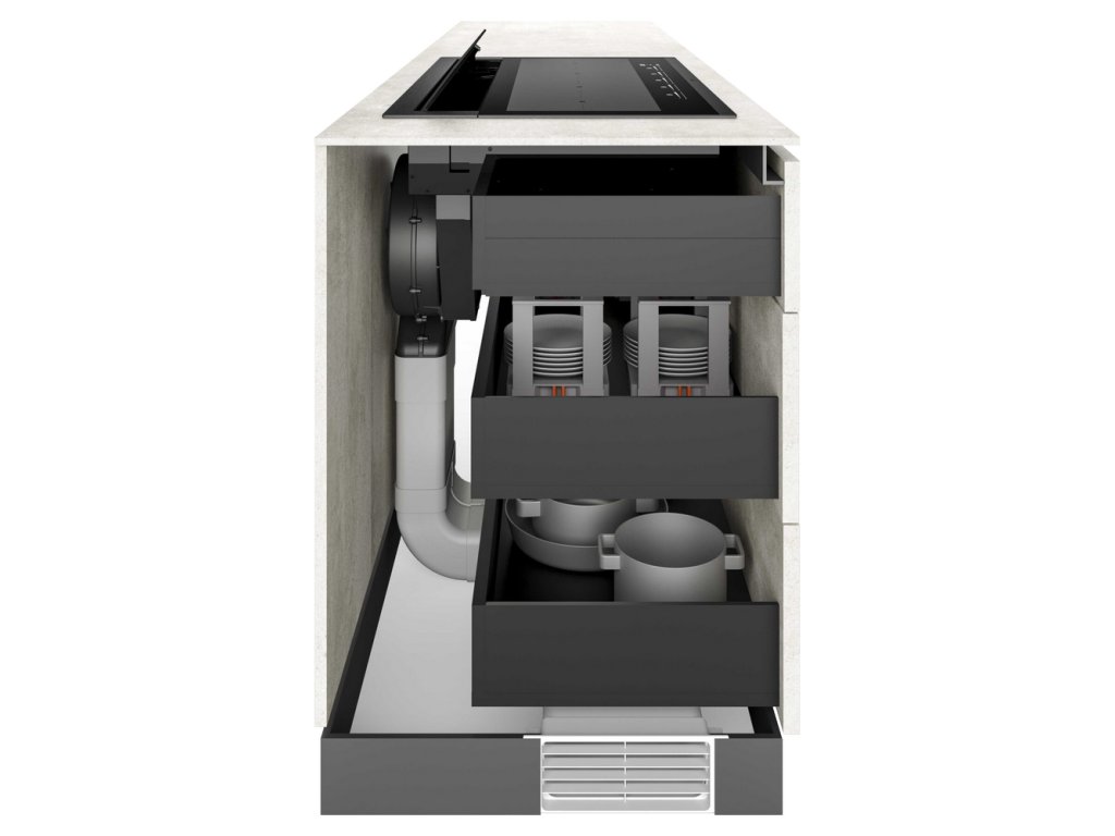 Revoluční způsob odsávání nabízí indukční varná deska s integrovanou digestoří INNOVA VISIO. Nové inovativní "FULL BLACK" ovládání varné desky, má při provozu bílé podsvícení a po vypnutí je ovládání zcela neviditelné. Zahrnuje ovládání digestoře a varné desky. Výrobek lze vestavět do standardní pracovní desky a díky originálně umístěnému svislému motoru nezabírá místo pod deskou a zůstane tak po instalaci ve skříňce více místa pro zásuvky. Páry vzniklé při vaření jsou odsávány automaticky uzavíratelnou štěrbinou umístěnou přímo v zadní části indukční varné desky.Digestoř je možné ovládat pomocí dotykového ovládání, které je umístěno vedle ovládacího panelu varné desky. Je vybavena devíti rychlostmi stupni, jedním stupněm intenzivního odsávání a funkcí signalizace nasycení filtrů. Odsavač je standardně dodáván v odtahové verzi, v případě recirkulačního provozu je třeba k digestoři dokoupit uhlíkové filtry nebo soklovou recirkulační sadu.Indukční varná deska je vybavena progresivním dotykovým slider ovládáním, které citlivě reaguje na dotek a umožňuje velmi jednoduchým způsobem zvyšovat nebo snižovat výkon digestoře. Digestoř má 4 flexi zóny s 9 stupni výkonu a funkcí booster pro každou varnou zónu. Disponuje také velkým množstvím funkcí, jako je funkce detekce nádob, kontrolka zbytkového tepla, minutka, časovač vaření, udržování teploty, dětský zámek, pauza a automatický režim. Mimoto je možné využívat také funkci Bridge (dvě pravé nebo dvě levé varné zóny je možné propojit a používat pro vaření ve velkých nádobách).Záruka na funkční díly 5 let.Doplňkové parametry