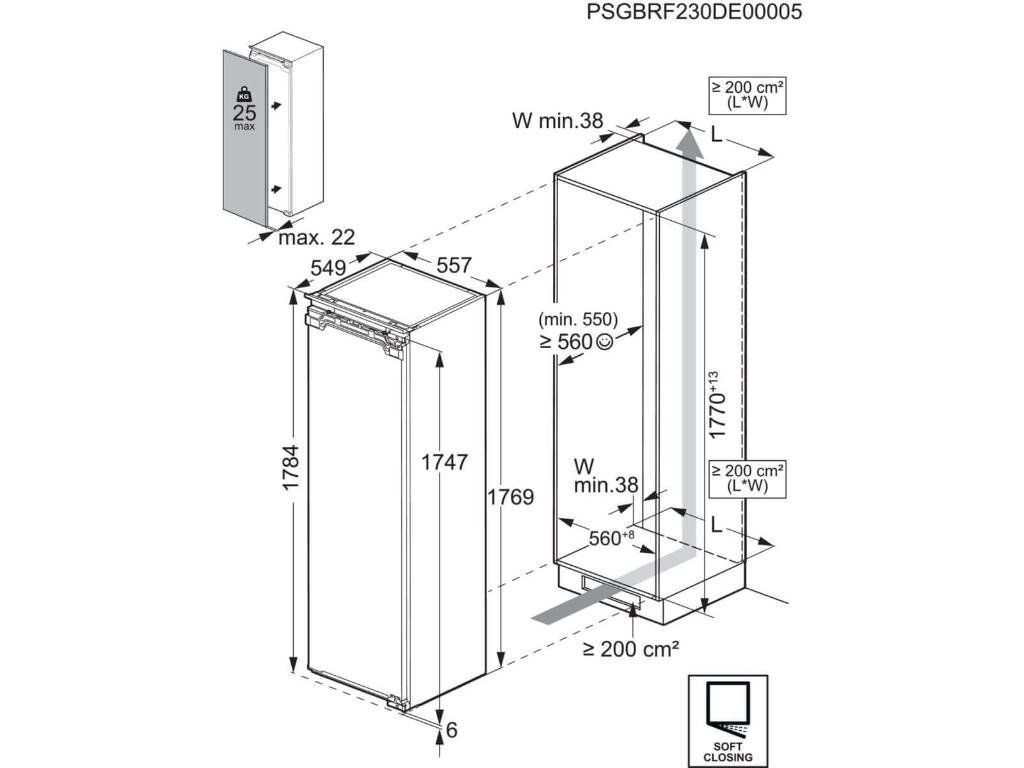 Pro plnou integraci do vestavné kuchyně Čistá kapacita mrazícího prostoru: 204 (l)