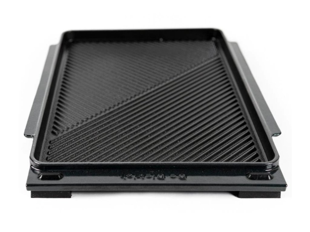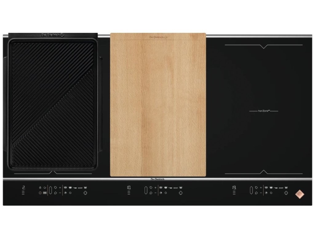 Ve snaze o rozšíření možností využití technologie indukční varné zóny horiZone vyvinula značka De Dietrich modulární systém kvalitního příslušenství horiZonePlay. Indukční varné desky horiZonePlay jsou k dispozici v šířkách 90 cm, 80 cm a 65 cm a jejich součástí je luxusní dřevěné prkénko z francouzského regionu Sologne. K varné desce lze dokoupit také robustní gril s diagonálním žebrováním a grilovací desku plancha s perfektně rovným povrchem. Obě jsou vyrobeny z masivní odolné litiny s vynikající tepelnou vodivostí, jejich velikost je přizpůsobena rozměrům varné plochy horiZone a designová kovová vodící lišta na zadní straně desky zabraňuje jejich nechtěnému pohybu po skle varné desky. Gril s žebrovanou plochou skvěle poslouží při tradičním domácím grilování masa, ryb, klobásek nebo zeleniny. Grilovací desku plancha s rovným povrchem lze využít k přípravě pokrmů, které nepotřebují příliš mnoho času k tepelné úpravě. Například mušlí, nebo čerstvých mořských plodů. Vynikající je k přípravě palačinek, lívanců, omelet, různých druhů bramborových a obilných placek či tortill. Díky velké grilovací ploše 38 x 26 cm můžete připravovat hned několik pokrmů současně. Nasytit velkou společnost nikdy nebylo jednodušší a zábavnější! Díky grilovacím deskám získáte dokonalou chuť venkovního grilování kdykoliv se vám zamane. Podívejte se, jak snadné je grilování na varných deskách De Dietrich s funkcí horiZonePlay: