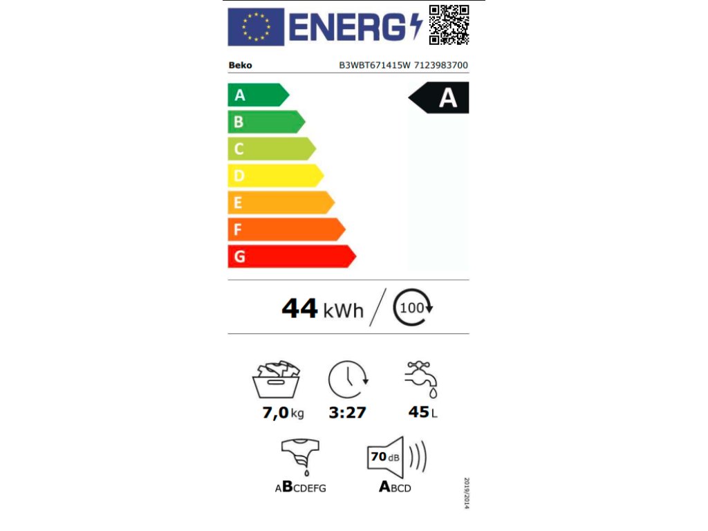 Kapacita praní 7 kg Třída en. účinnosti A