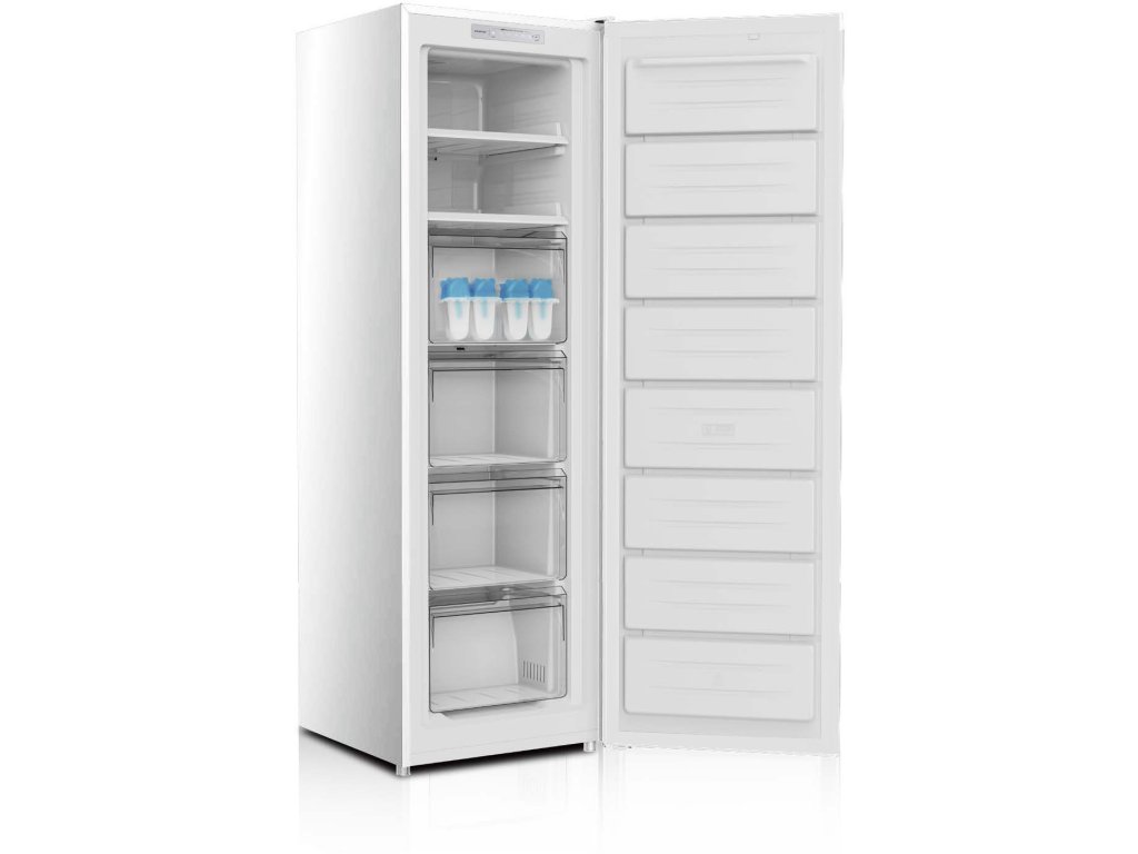 Romo RFN3204WD přináší dokonalou kombinaci prostorného objemu 204 litrů a moderní technologie Total No Frost, která eliminuje tvorbu námrazy. Díky funkci super mrazení a alarmu otevřených dveří budete mít vždy jistotu, že vaše potraviny jsou bezpečně uložené. Kompaktní rozměry s výškou 171 cm a šířkou pouhých 54,5 cm umožňují umístit mrazničku i do menších prostor, aniž byste museli slevit z kapacity.